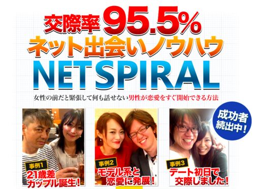 交際率95.5%ネット出会いノウハウ と謳うのが今回レビューする、 出水聡さんの『NET SPIRAL』という教材。 ・「『NET SPIRAL』とはどんな教材なのか?」 ・「購入する価値のある内容なのか?」 といったことに関して、 徹底的に解明していきます。 特商法の…
